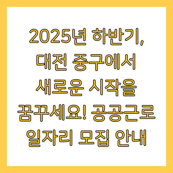 2025년 하반기, 대전 중구에서 새로운 시작을 꿈꾸세요! 공공근로 일자리 모집 안내