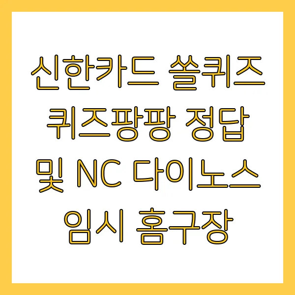 신한카드 쏠퀴즈, 퀴즈팡팡 정답과 NC 다이노스 임시 홈구장 이야기