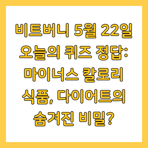 비트버니 5월 22일 오늘의 퀴즈 정답: 마이너스 칼로리 식품, 다이어트의 숨겨진 비밀?
